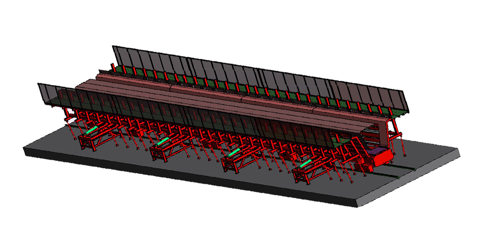 PC固定模台柔性生产线既有固定模台生产线的低设备投入,又具有自动化生产线的高度机械化,自动化特点。