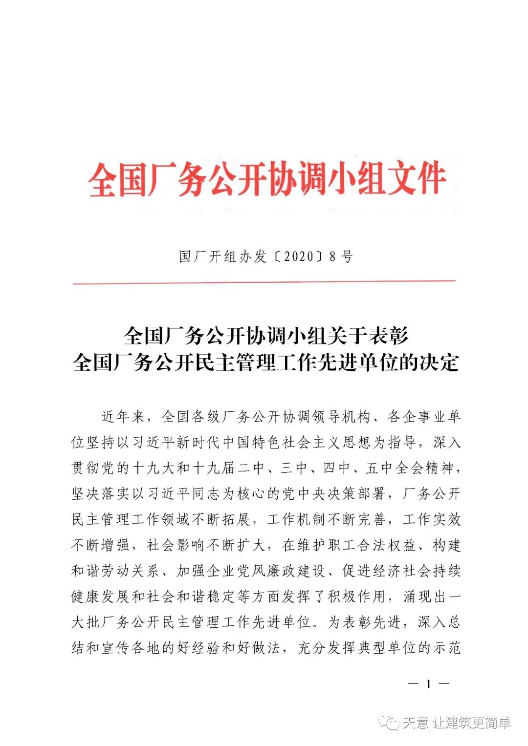 12月11日,从全国总工会传来喜讯,开云球赛中国有限公司被授予“全国厂务公开民主管理先进单位”称号。