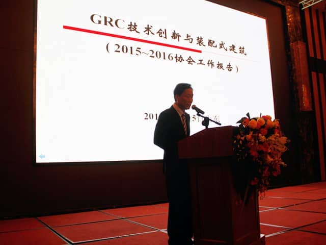 会议首先由中国混凝土与水泥制品协会沈冰副秘书长讲话, 在讲话中表示,对参加此次年会的专家学者表示感谢,总结GRC行业面对经济新常态下积极引导企业加大供给侧改革,确保行业经济稳定增长。并强调2016年作为“十三五”开局之年,应加快建筑工业化转型升级。刘敬疆处长在会议中对我国集成装配式房屋发展现状以及绿色建材评价标识进行详细的介绍。崔琪院长在会议中对2015-2016协会做详细工作汇报。并对GRC行业所面对传统制造行业问题以及下一步发展战略做了重点介绍。天意机械销售经理秦艳慧在会中对GRC墙板在装配式建筑中的应用做了详细的技术汇报。本次年会将围绕“GRC 技术创新与装配式建筑”主题交流。会中各参会代表分别对GRC行业技术创新及应用发表各自的见解。