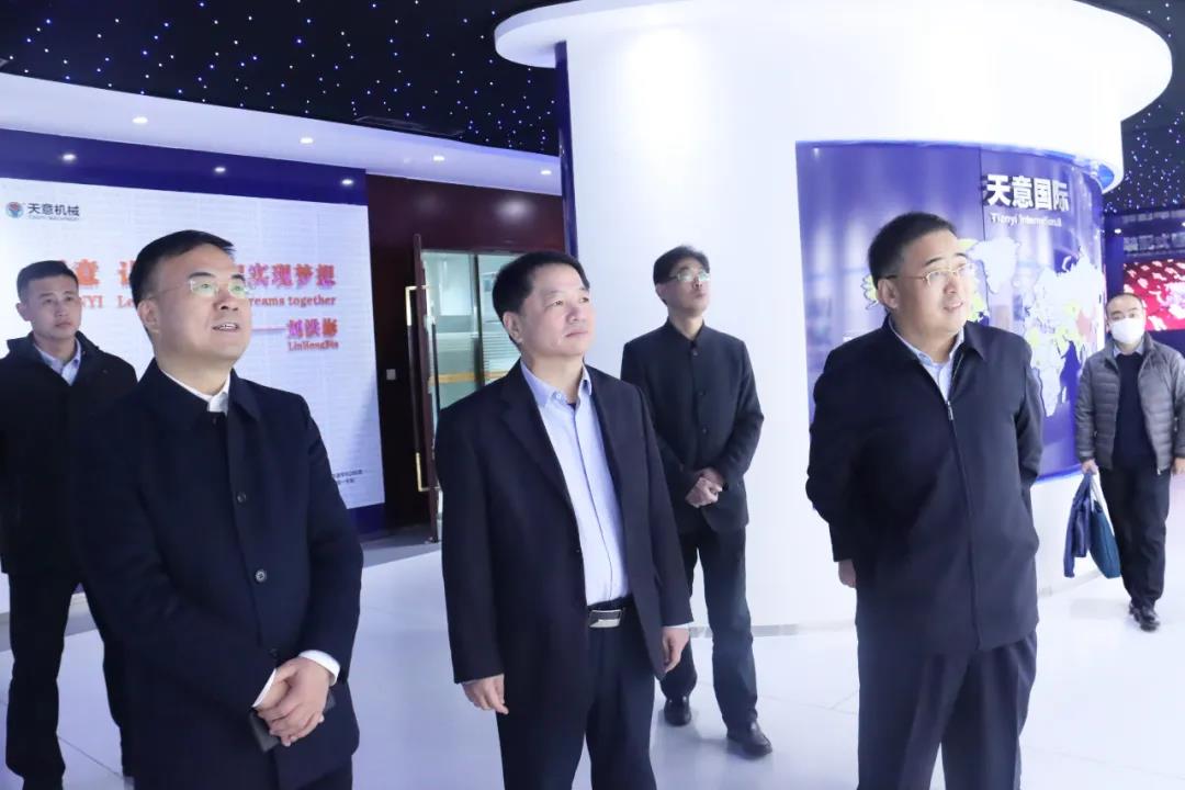 11月24日,山东省检察院检委会专职委员蒋万云一行莅临天意机械考察调研。济宁市检察院党组书记、检察长宋晓磊,第八检察部主任陈玲,区检察院党组书记、检察长安如喜,党组成员、副检察长李秀贞,天意机械董事长刘洪彬等领导陪同调研。