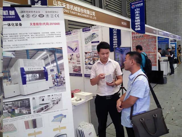 本次展览会现场人头攒动,气氛十分热烈,天意机械展位也是人气火爆,前来咨询钢结构集成房屋、外墙保温装饰一体化板生产线,轻质墙板生产线、复合墙板生产线等产品的客户络绎不绝。销售部李经理,热情的向来访的每位客户,介绍了天意绿色建材装备在钢结构建筑、装配式建产业化中的应用优势。