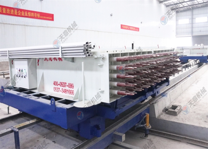 10.墙板机双向开合,采用卯榫工艺焊接,确保大板焊接厚度以至,大板经四面刨铣,能保证生产线上的模车一至,以便于后期整体上成型,自动抽芯机,自动涂油机的安装。