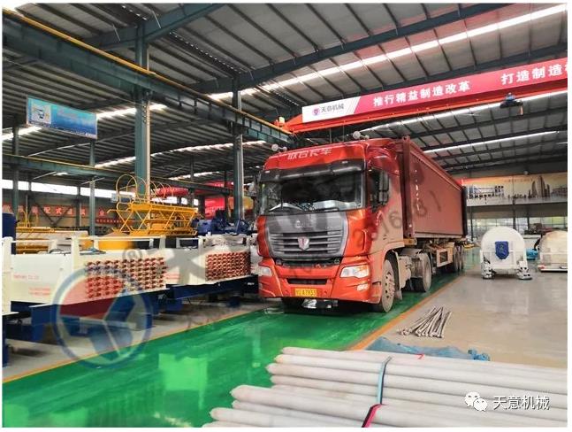 参展多,人气旺,天意机械设备销售情况持续向好,PC装备、墙板装备、保温装饰一体化板生产线等事业部在原有生产任务繁重的情况下,又陆续接到来自海外地区一批紧急求购订单,随着发货量不断增大,发货车排起长龙,天意机械的货物发运系统面临着很大的挑战。