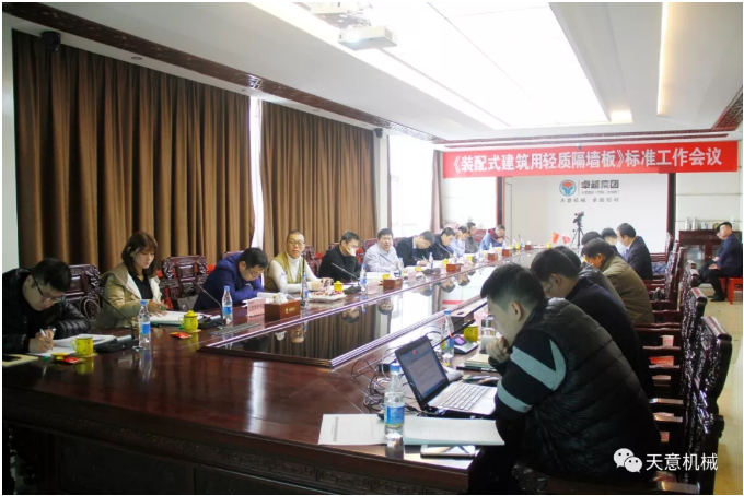 会议首先由天意机械董事长暨中国循环经济墙材革新工作委员会会长刘洪彬致辞,对与会的专家、学者来到天意表示欢迎,随后简要介绍了公司的发展以及行业内取得的成就。本次会议由建筑材料工业技术监督研究中心主任王桓主持,会议期间各行业、专家学者详细讨论了《装配式建筑用轻质隔墙板》标准制定工作。