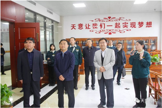 2018年11月27日,省政协办公厅副主任朱兴刚带领“政协工作齐鲁行”集中采访团一行23人,在市政协副主席陈希忠、兖州区区委书记王宏伟等领导陪同下,莅临天意机械考察指导,公司董事长刘洪彬热情接待采访团一行并陪同参观。