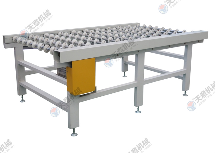 适用于背涂胶硅酸钙板、水泥纤维板、玻镁板等进行流水作业时的工件输送。采用尼龙轮输送,既能减少与胶面的接触面积还能保证板材的平稳输送。