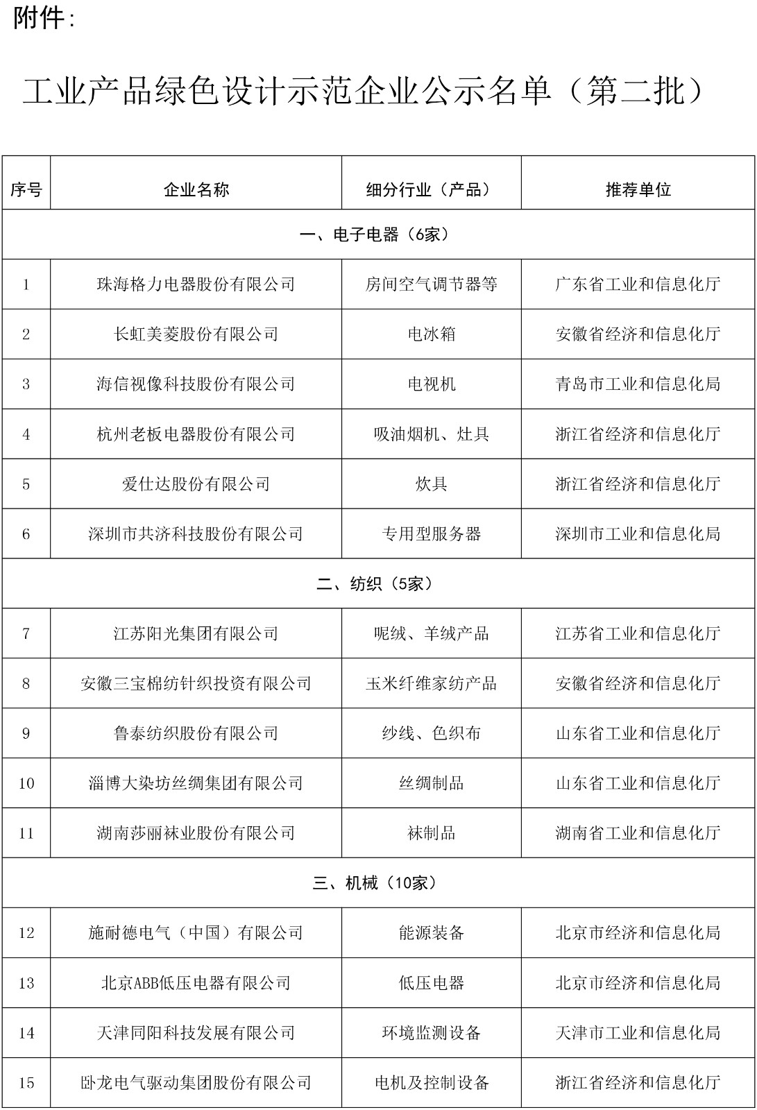 为加快推行工业产品绿色设计,促进制造业高质量发展,根据《工业和信息化部办公厅关于组织推荐第二批工业产品绿色设计示范企业的通知》(工信厅节函〔2020〕110号),经企业自评估、省级工业和信息化主管部门(或中央企业)推荐及专家评审,工信部将拟确定为工业产品绿色设计示范企业(第二批)的名单予以公示。